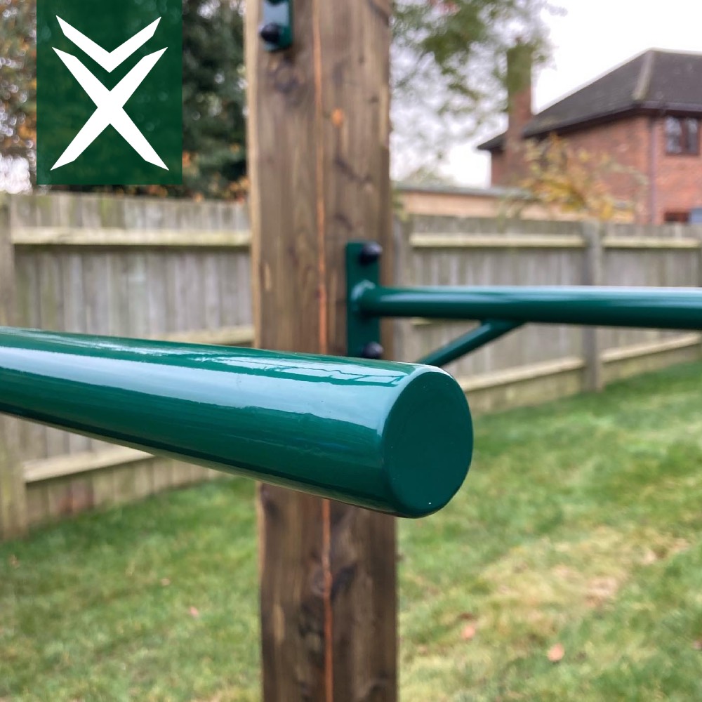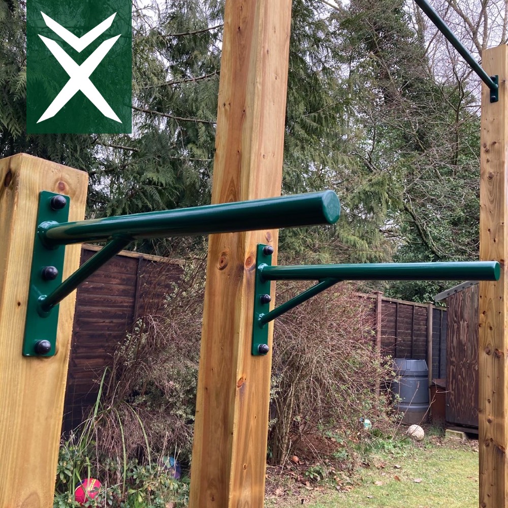 Pull Up Bar & Dip Bar DIY Kit includes all bars, posts, and fixings needed to build a durable outdoor gym.