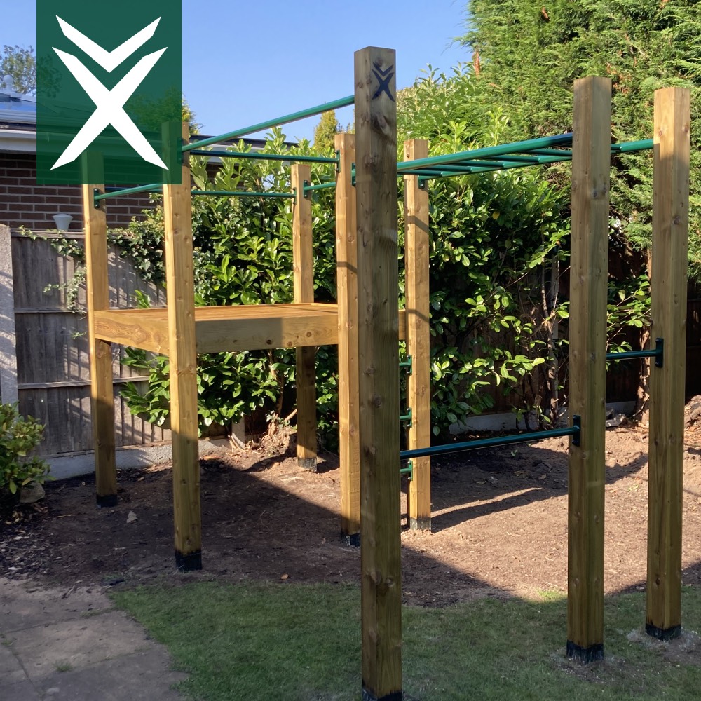 • 1 x 1524mm (5ft) Pre Cut Platform & Fixings & Side Bars / 1 x 1998mm (6.5ft) Monkey Bar / 4 x 406mm (16″) Climb Up Bars / 1 x 1998mm (6.5ft) Pull Up Bar / 1 x 995mm Pull Up Bar